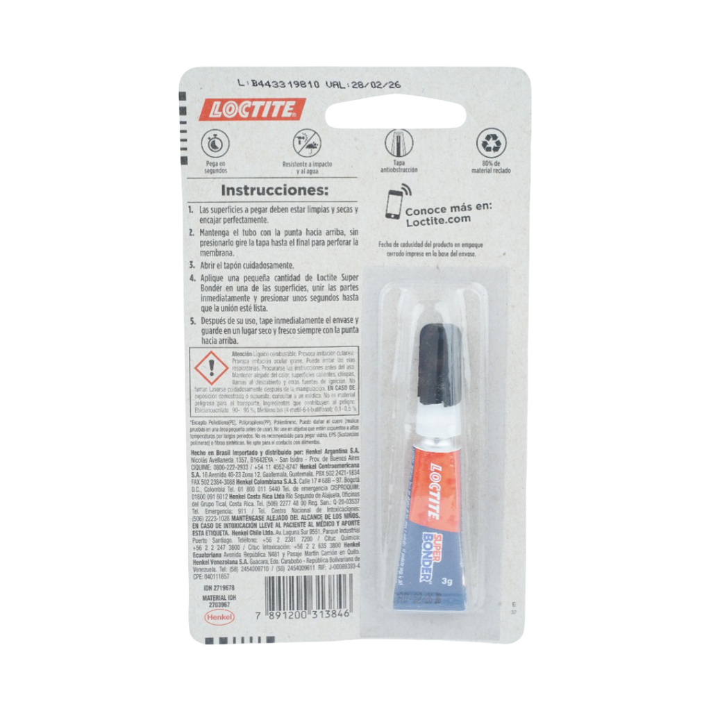 Loctite Super Bonder es un adhesivo instantáneo de propósito general diseñado para uniones rápidas, resistentes y confiables en múltiples materiales. Su fórmula avanzada ofrece gran desempeño en aplicaciones exigentes y está disponible en presentaciones prácticas que facilitan su aplicación en diferentes superficies.