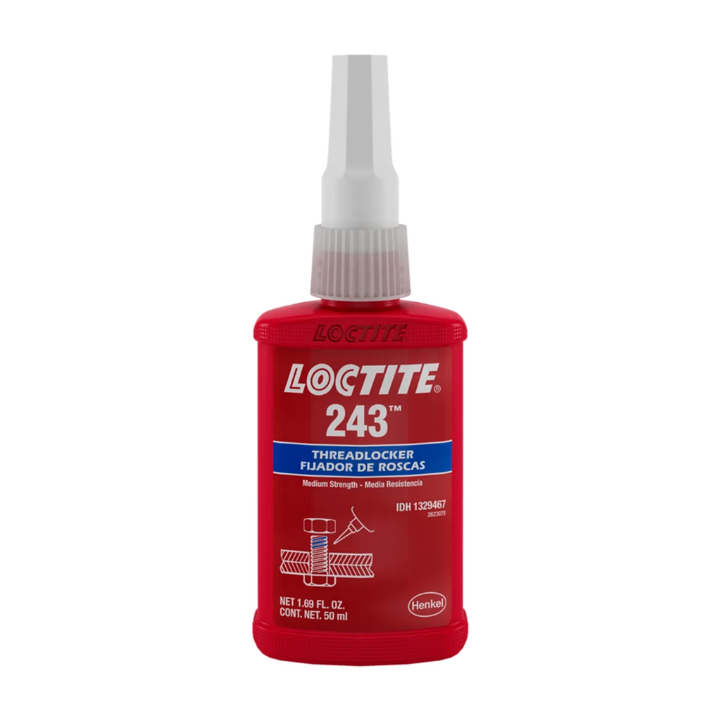 Loctite® 243 es un fijador de roscas de resistencia media, diseñado para asegurar y sellar tornillos, pernos y tuercas que requieren desmontaje normal con herramientas manuales. Cura en ausencia de aire entre superficies metálicas ajustadas, evitando el aflojamiento por vibración y las fugas.