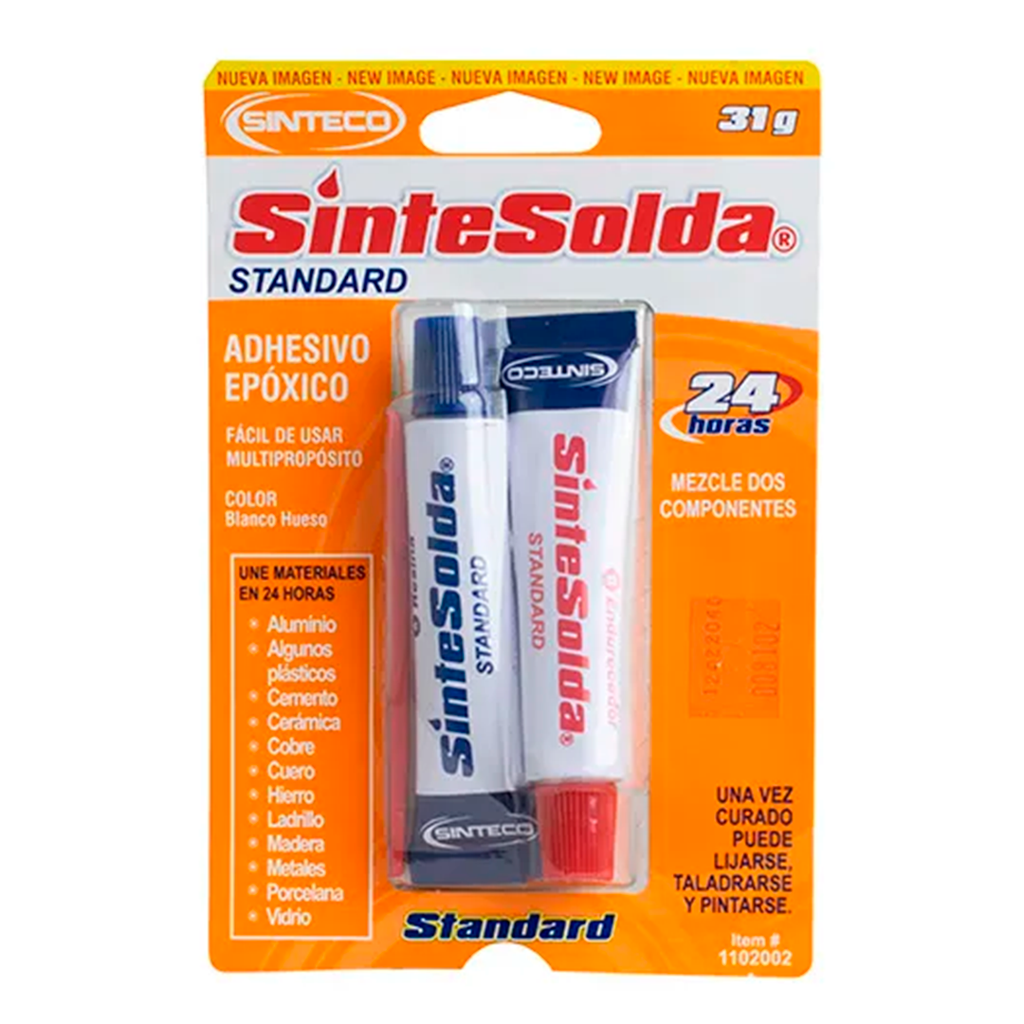 El Sintesolda Standard es un adhesivo epóxico bicomponente que combina resina y endurecedor en proporción 1:1. Una vez mezclado, endurece en 24 horas manteniendo su forma sin contraerse ni dilatarse. Es ideal como adhesivo estructural, recubrimiento protector o aislante eléctrico.